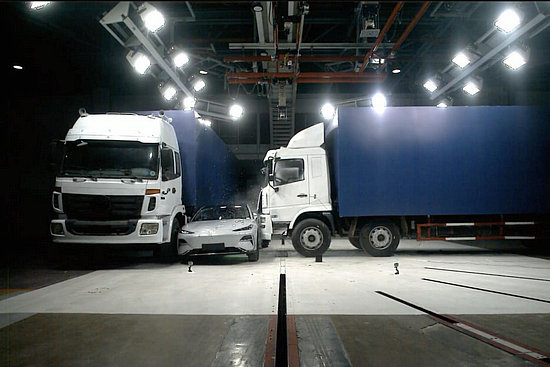 吉利銀河 E8 通過20 噸失控重卡夾擊碰撞安全測試