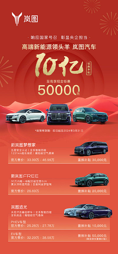 嵐圖汽車10億置換補(bǔ)貼季來襲 至高補(bǔ)貼50000元!
