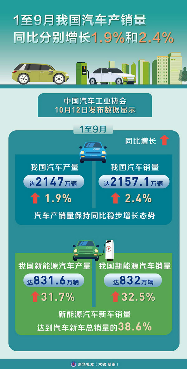 中國汽車工業(yè)協(xié)會(huì)12日發(fā)布數(shù)據(jù)顯示,1至9月,我國汽車產(chǎn)銷量達(dá)2147萬輛和2157.1萬輛,同比分別增長1.9%和2.4%,汽車產(chǎn)銷量保持同比穩(wěn)步增長態(tài)勢。