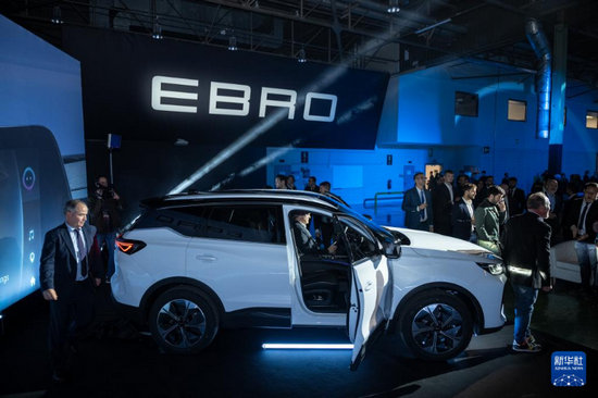 11月23日,在西班牙巴塞羅那自由貿(mào)易區(qū),嘉賓體驗(yàn)中國汽車制造商奇瑞與西班牙埃布羅公司合資工廠的首款車型。 新華社發(fā)(胡安·戈薩攝)