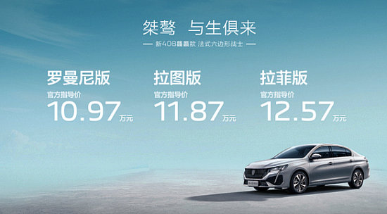 3月18日,東風(fēng)標(biāo)致新408龘龘款正式上市,共推出3款車型,官方指導(dǎo)價(jià)分別為羅曼尼版10。97萬(wàn)元、拉圖版11。87萬(wàn)元、拉菲版12。57萬(wàn)元。