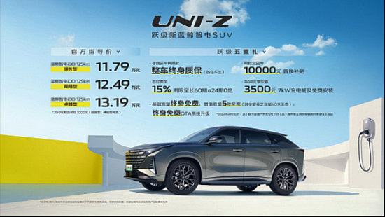 3月28日,長安UNI-Z上市直播發(fā)布會(huì)舉行,躍級(jí)新藍(lán)鯨智電SUV——長安UNI-Z正式上市,此次共發(fā)布3款配置,分別為藍(lán)鯨智電iDD 125km領(lǐng)先型、藍(lán)鯨智電iDD 125km超越型、藍(lán)鯨智電iDD 125km卓越型,官方指導(dǎo)價(jià)11。79萬元-13。19萬元。