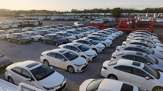 2023年9月,蘇美達(dá)百余臺二手新能源汽車整裝待發(fā),從南京發(fā)出,在新疆霍爾果斯口岸集港。(受訪者供圖)
