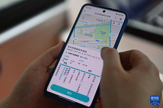 5月22日,市民通過(guò)手機(jī)預(yù)約體驗(yàn)自動(dòng)駕駛接駁示范線。