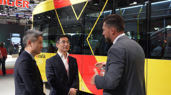 展會(huì)首日,金旅客車黨委書記、董事長(zhǎng)彭東慶接受了記者的采訪。剛剛結(jié)束與北歐客戶的兩場(chǎng)會(huì)談,他又匆匆走入新的會(huì)議室。“這幾天的會(huì)議幾乎是連軸轉(zhuǎn)。”他笑著說,“但這也說明歐洲客戶對(duì)中國(guó)客車的興趣與日俱增。”