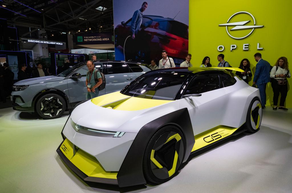 9月9日,人們?cè)诘聡?guó)慕尼黑國(guó)際車(chē)展的歐寶汽車(chē)展臺(tái)參觀(guān)概念車(chē)。新華社記者 張帆 攝