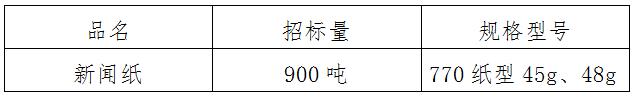 綿陽市欣文印務(wù)有限公司計(jì)劃公開招標(biāo)采購770紙型45、48克優(yōu)質(zhì)新聞紙約900噸(此數(shù)量為年計(jì)劃用量,實(shí)際采購數(shù)量和規(guī)格按我方下達(dá)的送貨計(jì)劃執(zhí)行),歡迎新聞紙生產(chǎn)企業(yè)和經(jīng)銷企業(yè)參與投標(biāo)。相關(guān)事項(xiàng)公告如下: