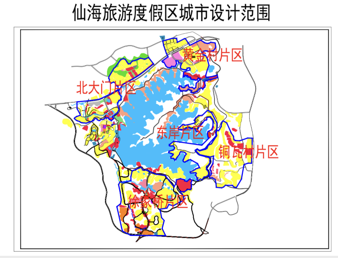 本項目主要設(shè)計內(nèi)容為對仙海北大門片區(qū)、黃金村片區(qū)、徐家橋片區(qū)、銅瓦片區(qū)及東岸片區(qū)進(jìn)行方案設(shè)計(見附圖),總面積約15平方公里。設(shè)計內(nèi)容含總體定位、功能布局、空間形態(tài)、公共配套設(shè)施、業(yè)態(tài)布局、風(fēng)貌管控等設(shè)計。具體設(shè)計范圍和設(shè)計要求。