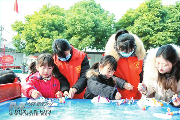 在太平鎮(zhèn)泗月村和龐家場村的“童伴之家”,志愿者們同小朋友們一起制作燈籠、寫“福”字,將它送給最愛的人。“蘿卜蹲”“跳大繩”“老鷹捉小雞”一個接著一個的歡樂小游戲鍛煉了身體,愉悅了身心。