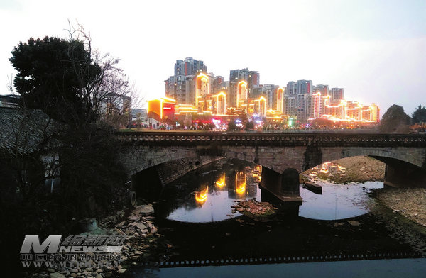 冷清的大橋身后,燈火映照著現(xiàn)代小鎮(zhèn)的繁榮