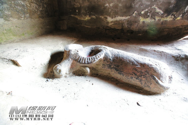 雕刻在地面上的石牛