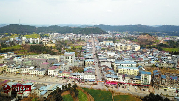 從綿鹽公路進(jìn)入場鎮(zhèn),一條筆直寬闊的街道直通對面的山腰,其間還有多條橫街。由于街道修建在山坡上,走在這里,感覺來到了一座小山城。