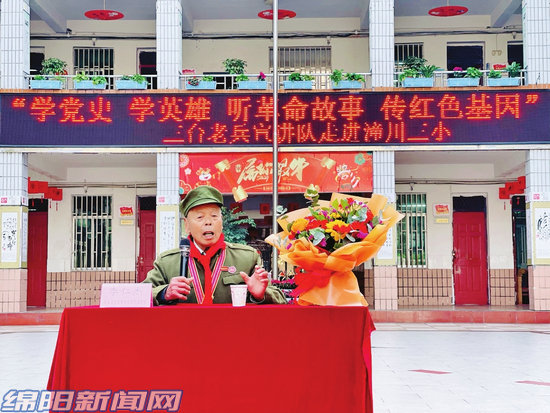 近日,在潼川三小操場(chǎng)的講臺(tái)上,來(lái)自景福鎮(zhèn)年近9旬的抗美援朝出國(guó)作戰(zhàn)老兵李仁杰結(jié)合參戰(zhàn)的親身經(jīng)歷,講述了在戰(zhàn)火紛飛的歲月中,那一段難以忘懷的記憶,師生們認(rèn)真聆聽(tīng),不時(shí)以熱烈的掌聲表達(dá)對(duì)老兵的敬意……連日來(lái),全縣各中小學(xué)活用“五老”資源,壯大“五老”隊(duì)伍,積極推進(jìn)黨史學(xué)習(xí)教育向青少年學(xué)生延伸。