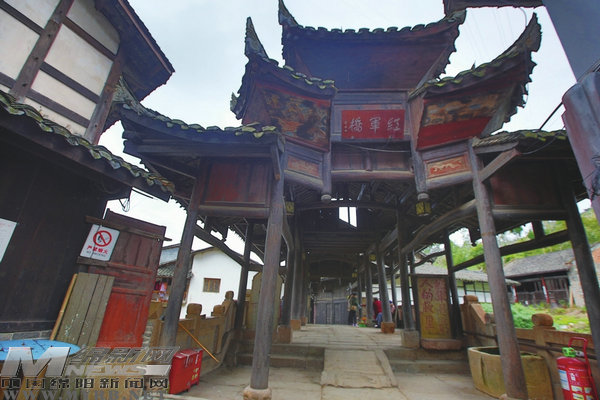三圣廟旁的紅軍橋矗立在平南河上