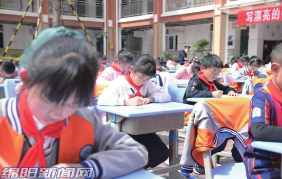 綿陽新聞網(wǎng)訊 濃春四月,草木蔓發(fā),繁花生樹,校園可親。在這明媚的日子里,我們寫字去。為更好地弘揚(yáng)中華漢語言文化,傳承漢字文化遺產(chǎn),促進(jìn)規(guī)范用字、規(guī)范書寫,培養(yǎng)學(xué)生熱愛祖國語言文字的情感,提高漢字書寫能力,4月16日下午,玉泉路小學(xué)開展了“童心向黨,傳承經(jīng)典”的詩詞書法大賽,把對(duì)于黨、對(duì)于祖國的熱愛與祝福在撇捺之間盡情揮灑(如圖)。