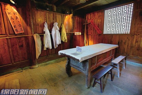 北川紅四方面軍總醫(yī)院舊址中院過廳的展柜里,陳列了部分紅軍使用過的物品和用具。這些簡(jiǎn)陋的器具仿佛在向人們?cè)V說,紅軍在十分艱難困苦的條件下也在堅(jiān)持戰(zhàn)斗。四周的墻壁上同時(shí)陳列了在這里戰(zhàn)斗過的15位將軍的照片。其中有一位將軍叫王世明,他是馬槽人,1935年參加紅軍,1955年被授予上校軍銜。王世明的父母共生養(yǎng)了10個(gè)子女,其中9個(gè)不是餓死就是病死,只有他活了下來。后來,紅軍來了,馬槽解放了。他們進(jìn)村入戶宣傳政策,宣講三大紀(jì)律八項(xiàng)注意,不住民房,不犯百姓,還打土豪分田地,幫著治病救人。王世明的父親讓他跟著紅軍走。后來,王世明任原蘭州軍區(qū)后勤部27分部政委,副軍級(jí)。