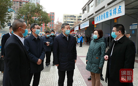來到四〇四醫(yī)院,曹立軍詳細(xì)了解醫(yī)院預(yù)檢分診的流程、防護(hù)設(shè)施配備、隔離病區(qū)設(shè)置等情況,要求醫(yī)院要充分發(fā)揮好“哨點(diǎn)、探頭”作用,嚴(yán)格落實發(fā)熱患者首診負(fù)責(zé)、接診收治、預(yù)檢分診等制度,加強(qiáng)患者流行病學(xué)史、旅居史調(diào)查,守住不發(fā)生院內(nèi)感染的底線。在醫(yī)院核酸采樣點(diǎn),市民正有序排隊進(jìn)行核酸檢測。“目前全市24小時采樣點(diǎn)有多少?每日檢測量有多大?”曹立軍詳細(xì)了解有關(guān)情況,強(qiáng)調(diào)要統(tǒng)籌調(diào)度核酸檢測機(jī)構(gòu)力量,大幅度增加核酸檢測點(diǎn),科學(xué)布局采樣點(diǎn)位,實行24小時檢測,方便返鄉(xiāng)來綿群眾及時就近檢測,有效滿足群眾核酸檢測需求。