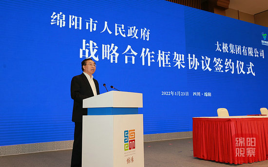 綿陽新聞網(wǎng)訊 1月23日,市政府與太極集團有限公司簽署戰(zhàn)略合作框架協(xié)議。副省長、市委書記曹立軍,中國醫(yī)藥集團有限公司黨委書記、董事長劉敬楨致辭并共同見證簽約。市委副書記李云主持。