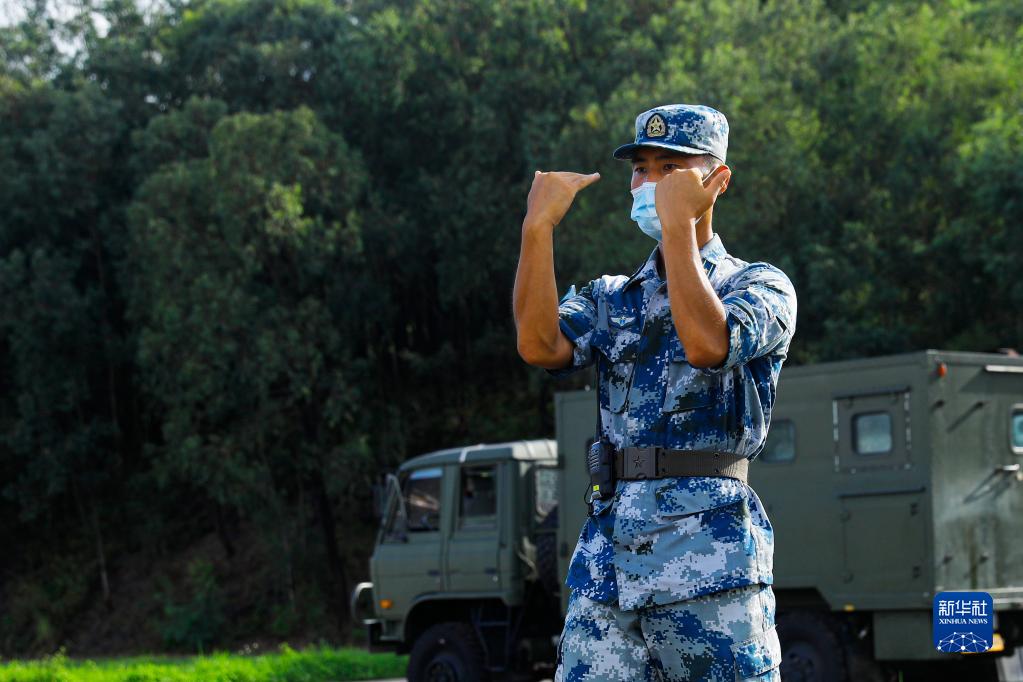 駐香港部隊某團防空營營長王海旭在防空陣地上指揮戰(zhàn)斗裝備進入預(yù)定區(qū)域(2020年8月13日攝)。新華社發(fā)(田越洋 攝)