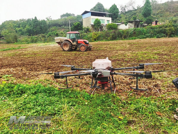 綿陽(yáng)新聞網(wǎng)訊 “2022秋小麥播種開始!”隨著一聲令下,施肥車轟鳴著駛進(jìn)地里,肥料從車后的旋轉(zhuǎn)裝置中噴出,均勻地灑在土壤表面;無人機(jī)騰空而起,低空快速掠過,麥種從轉(zhuǎn)盤中拋出,撒在田里;翻耕機(jī)緊隨其后,裹挾著泥土和肥料,把一粒粒麥種翻進(jìn)土里(如圖)。
