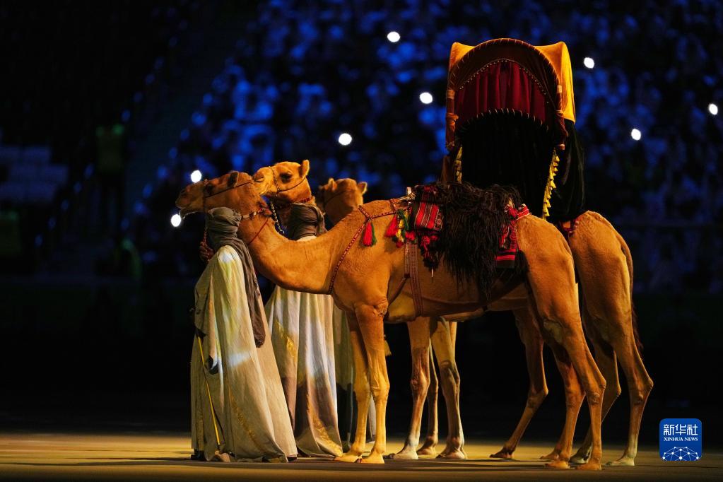 這是11月20日拍攝的開幕式現(xiàn)場的駱駝。