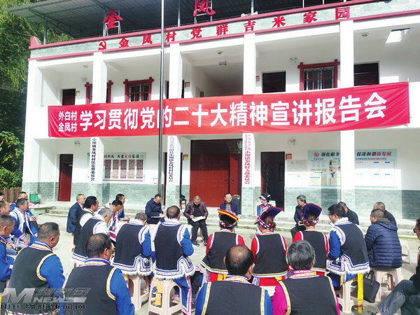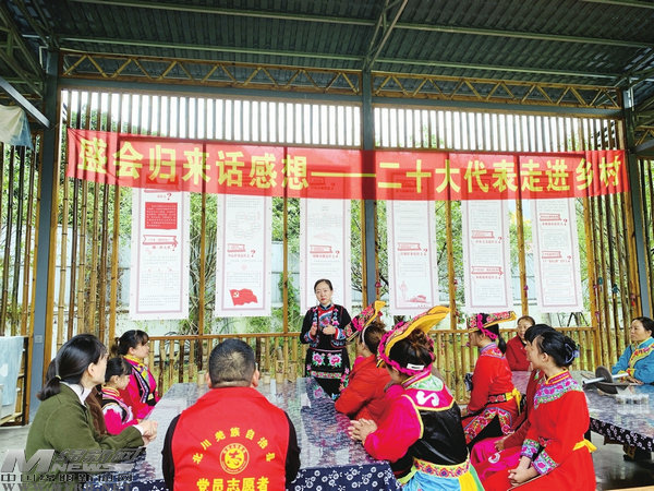 從北京歸來,陳云珍進機關(guān)到學(xué)校、社區(qū),已開展了18場次宣講(如圖)。在小壩鎮(zhèn)金鳳村,陳云珍緊扣黨的二十大報告“激發(fā)全民族文化創(chuàng)新創(chuàng)造活力”等方面內(nèi)容和村里的發(fā)展實際,提出每個人都應(yīng)是優(yōu)秀傳統(tǒng)文化的推廣者和傳播者,要將文化做成產(chǎn)業(yè),引發(fā)現(xiàn)場干部群眾的強烈共鳴。