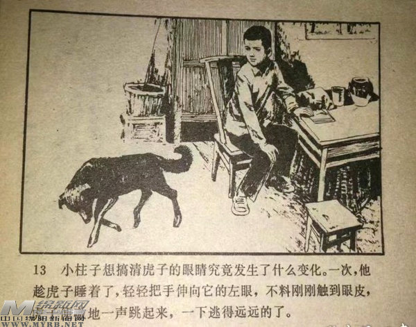 《春潮急》連環(huán)畫雖然沒能面世,但經(jīng)過改編長(zhǎng)篇小說的實(shí)踐,我學(xué)習(xí)到不少編寫連環(huán)畫腳本的知識(shí),也積累了一些經(jīng)驗(yàn),便繼續(xù)選取適宜改編的文學(xué)作品,堅(jiān)持業(yè)余時(shí)間進(jìn)行改編。由于學(xué)校工作主要和娃娃打交道,改編就大多涉及兒童、科幻題材和神話故事。如在一篇中篇小說上看到,解放戰(zhàn)爭(zhēng)時(shí)期,解放軍在攻打當(dāng)?shù)卮蟮刂魉拈愅鯙槭椎淖孕l(wèi)隊(duì)中,發(fā)現(xiàn)了一個(gè)叫楊春凌的孩子倒在血泊里,經(jīng)救治春凌當(dāng)了通訊員,在遭遇敵人時(shí),春凌機(jī)智勇敢牽引敵人,掩護(hù)區(qū)隊(duì)長(zhǎng),出色地完成了傳送重要情報(bào)的任務(wù),情節(jié)緊張曲折,便改編成《火紅的戰(zhàn)旗》,由四川人民出版社出版向全國發(fā)行,第一次就印刷了七十多萬冊(cè)。又根據(jù)一個(gè)科學(xué)幻想故事改編成《虎眼之謎》,寫小柱子在自己的愛犬虎子被特務(wù)挖了狗的左眼球裝上微型竊聽器后,配合公安人員將計(jì)就計(jì),在狗眼內(nèi)安裝了微型紅外錄像機(jī),終于粉碎了敵特陰謀,將敵人一網(wǎng)打盡,也由四川人民出版社出版,印發(fā)百萬冊(cè)。我還為當(dāng)時(shí)綿陽縣辦的一張小報(bào)《科學(xué)與藝術(shù)》編寫了科學(xué)幻想連環(huán)畫《假如地球停止轉(zhuǎn)動(dòng)》。七十年代后期恢復(fù)高考考上大學(xué)后,由于忙于學(xué)業(yè),基本無暇顧及連環(huán)畫,但也根據(jù)寫人參姑娘與放牛郎結(jié)成美滿姻緣,勇斗毒蛇精的民間故事,與大學(xué)同學(xué)劉靜松合作改編了敘事詩連環(huán)畫腳本《斬蛇精》,由美術(shù)系教師繪畫,被四川人民出版社出版后受到少年兒童歡迎。
