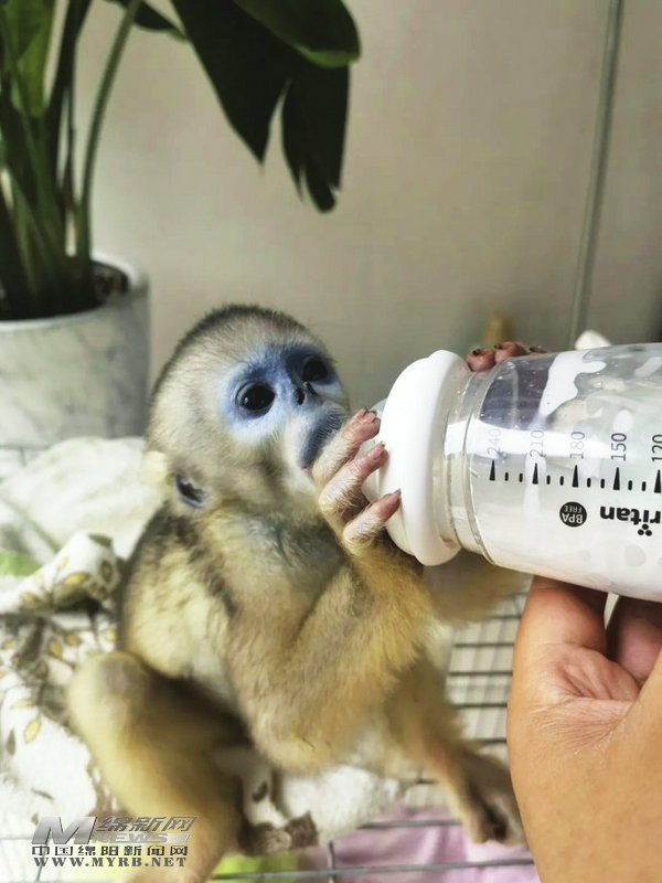 “小金”原本和家族群生活在綿陽千佛山叢林中,因為意外與族群失散。年幼的它被熱心游客撿到后,送到安州區(qū)野保站。工作人員對其進行了詳細檢查和應急處理后,又將它送到了市野生動物救護站。由于“小金”出生僅15天左右,經(jīng)驗豐富的飼養(yǎng)員充當起了它的專職“奶媽”,沖兌羊奶粉、輕揉腹部、耐心陪著玩……“小金”茁壯成長,身體各項指標很快恢復到健康水平。