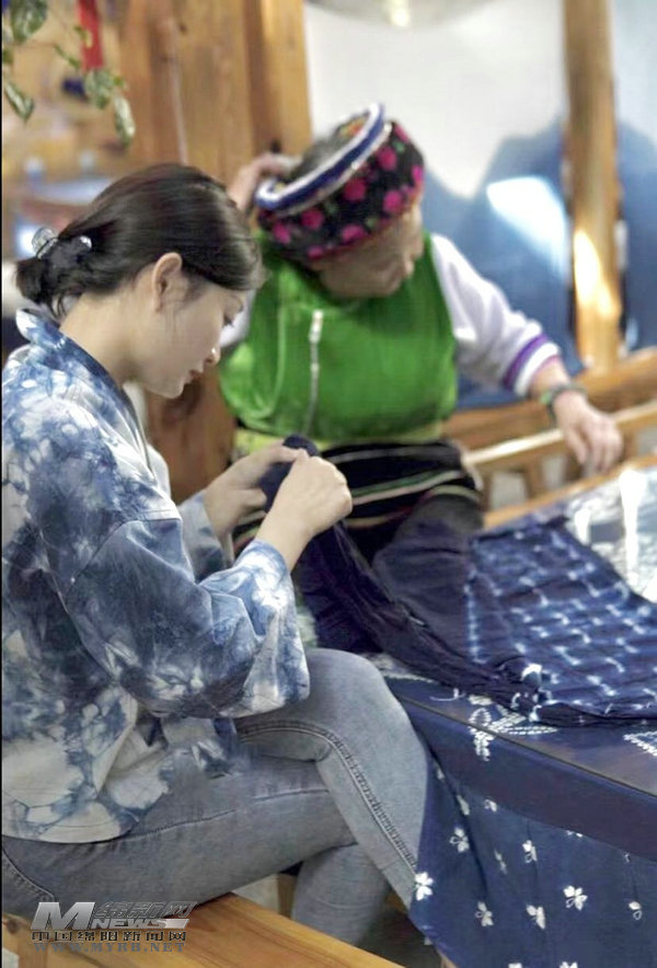 2018年3月,懷揣著對(duì)扎染的喜愛(ài),文雯前往云南大理學(xué)習(xí)扎染。在著名扎染大師段銀開(kāi)手把手指導(dǎo)下,一個(gè)多月后順利出師。