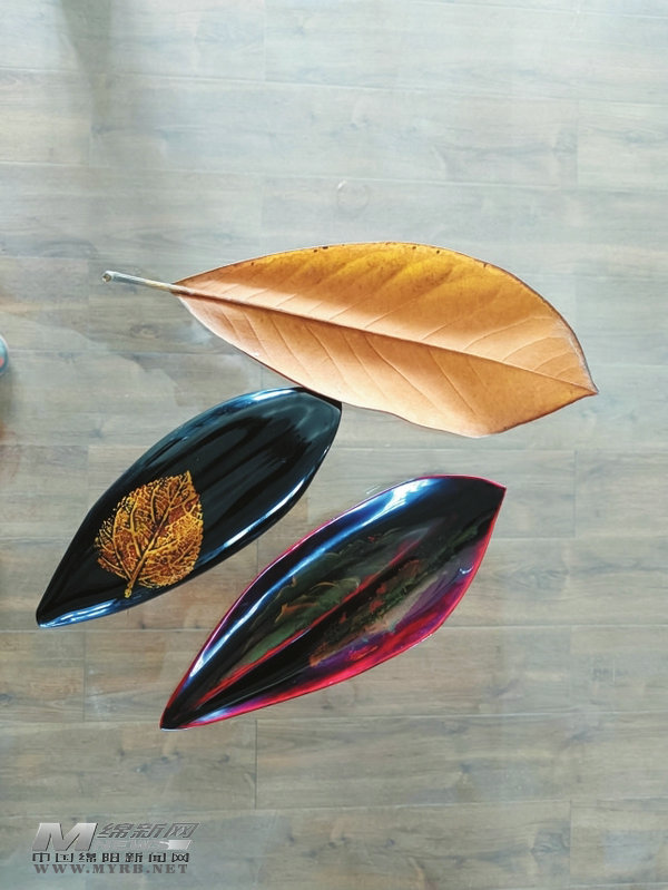 北川羌族水磨漆藝傳承人朱紅志研發(fā)出水磨漆藝茶則