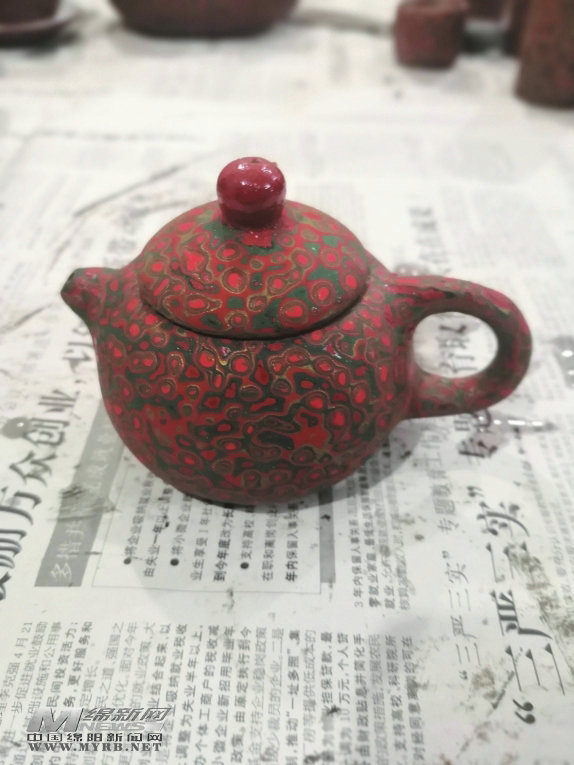 北川羌族水磨漆藝傳承人朱紅志研發(fā)出水磨漆藝茶壺