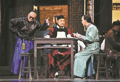 何冰飾演劉麻子(左)、濮存昕(中)飾演常四爺、馮遠征(右)飾演松二爺