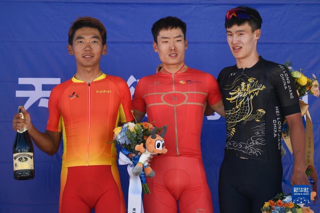 8月3日,獲得收官戰(zhàn)前三的李博安(中)、彭鑫(左)、姚永奇在頒獎臺上合影。新華社記者張龍攝