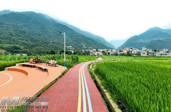 綿陽新聞網(wǎng)訊 稻田扮靚鄉(xiāng)村,綠道穿越田園,一幅美麗的生態(tài)畫卷在平武大地徐徐展開。近日,記者走進龍安鎮(zhèn)枕流村,50余畝連片水稻長勢喜人,綠油油的稻田與連綿起伏的青山、錯落有致的民居、縱橫交錯的田園綠道交相輝映,勾勒出一幅如詩如畫的美麗鄉(xiāng)村畫卷。