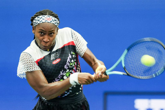 9月4日,高芙在比賽中回球。新華社記者 劉杰 攝
