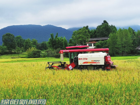 綿陽新聞網(wǎng)訊 目前正值水稻收獲季節(jié),連日來,江油大大小小的水稻種植戶忙著將收割機請到自家田間地頭,將豐收的糧食裝滿倉。