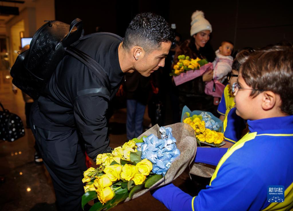1月2日,克·羅納爾多抵達(dá)利雅得國際機場后接受小球迷獻(xiàn)花。新華社/美聯(lián)