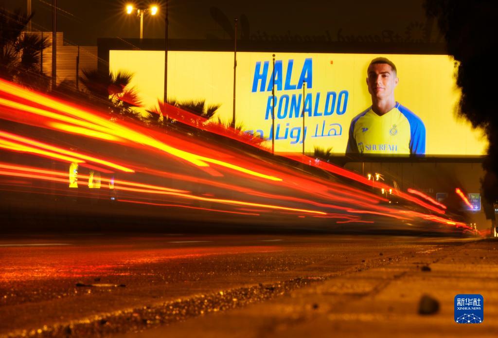 這是1月2日拍攝的利雅得公路上歡迎克·羅納爾多的巨幅廣告牌。新華社/美聯(lián)