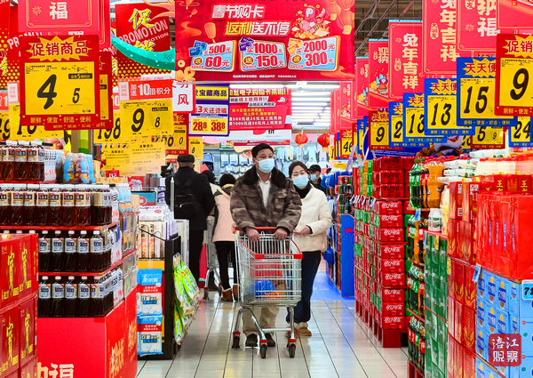 農(nóng)歷兔年春節(jié)將至,濃濃的年味撲面而來(lái)。1月6日,記者在綿陽(yáng)城區(qū)各大超市看到,琳瑯滿目的年貨擺滿了貨架,前來(lái)選購(gòu)年貨的人絡(luò)繹不絕,到處都是喜氣洋洋的景象。
