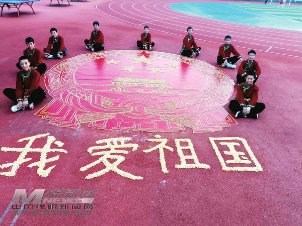 9月29日上午,在江油市長城實驗學校操場上,隨著一幅寬大的紅綢徐徐展開。該校布拖班的全體學生爭先恐后用事先準備好的金黃玉米粒,依照紅綢上的圖案線條忙碌起來。約1小時后,紅綢中央便呈現(xiàn)出一枚偌大的國徽造型圖案,下面用玉米粒鑲嵌四個大字:“我愛祖國”(如圖)??粗@幅特別的“糧食畫”,大家禁不住歡呼雀躍!