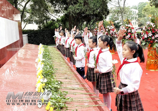 少先隊(duì)員瞻仰革命烈士紀(jì)念碑,敬獻(xiàn)鮮花?! ?綿報(bào)融媒記者 陳冬冬 攝)