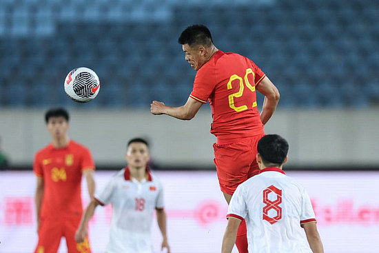 易邊再戰(zhàn),第56分鐘,中國(guó)隊(duì)劉洋在左路與戴偉浚配合后傳中,王秋明迎球凌空抽射破門,為中國(guó)隊(duì)率先打破僵局。第86分鐘,越南隊(duì)阮進(jìn)靈禁區(qū)左側(cè)肘擊中國(guó)隊(duì)蔣光太,被主裁判出示紅牌直接罰下,越南隊(duì)被迫以10人應(yīng)戰(zhàn)。補(bǔ)時(shí)最后階段,越南隊(duì)阮黃德中場(chǎng)橫傳失誤,武磊搶斷后突入禁區(qū),輕松推射破門,為中國(guó)隊(duì)2:0鎖定勝局。