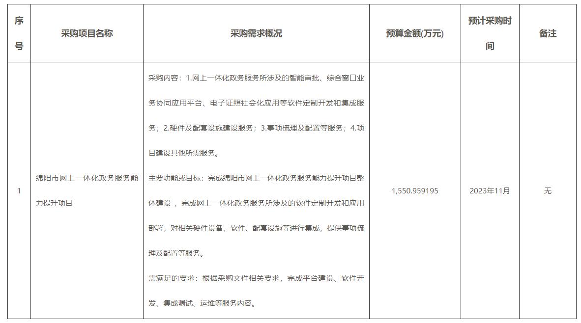 為便于供應(yīng)商及時(shí)了解政府采購(gòu)信息,根據(jù)《四川省財(cái)政廳關(guān)于開(kāi)展政府采購(gòu)意向公開(kāi)工作的通知》(川財(cái)采〔2021〕153號(hào))要求,現(xiàn)將綿陽(yáng)市政務(wù)服務(wù)監(jiān)督管理局2023年度(第4批)采購(gòu)意向公開(kāi)如下:
