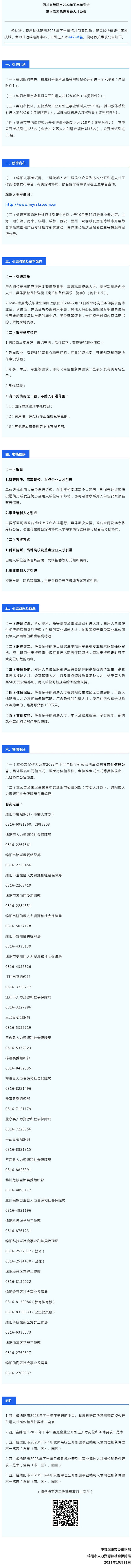 14716名!綿陽發(fā)布2023年下半年引才公告