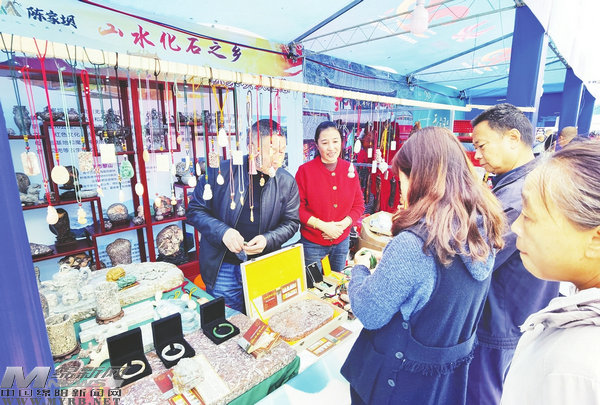 10月27日,記者在活動現(xiàn)場看到,展示展銷的商品在石紐路一字排開,分成3個展區(qū),A區(qū)為綿陽好物北川非遺展區(qū),B區(qū)為鄉(xiāng)鎮(zhèn)風(fēng)采展區(qū),北川16個鄉(xiāng)鎮(zhèn)設(shè)置了展位,將各自的拿手好物展示出來供游客挑選?,F(xiàn)場,咂酒、臘肉、蜂蜜以及奇石工藝品等北川特產(chǎn)應(yīng)有盡有。在鄉(xiāng)鎮(zhèn)風(fēng)采展展區(qū)還設(shè)立了展板,圖文并茂介紹該鄉(xiāng)鎮(zhèn)的特色,為游客提供參考。