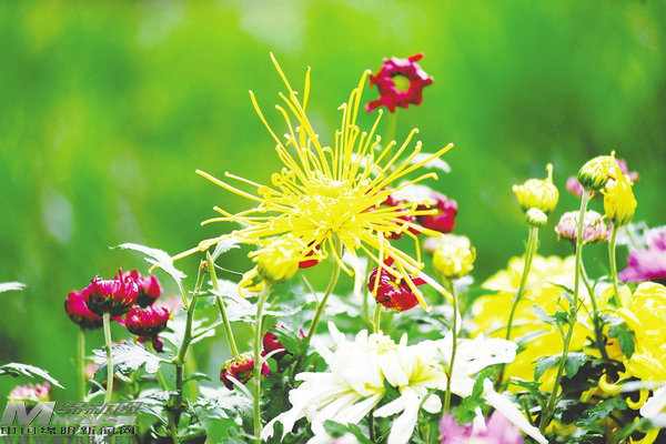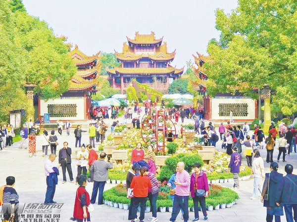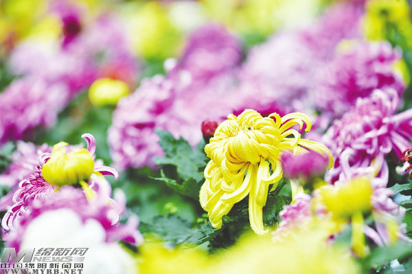 10月27日,在綿陽(yáng)富樂山第36屆菊花展上,10萬(wàn)余株各色菊花經(jīng)過(guò)了一夜秋雨洗禮后,顯得更加?jì)善G。本菊、大立菊、塔菊、懸崖菊、多頭菊……近500個(gè)品種的菊花爭(zhēng)奇斗艷,吸引眾多游客前來(lái)賞菊。