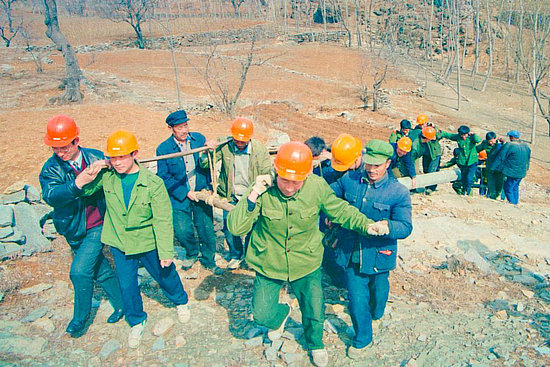 1994年,臨沂打響村村通電攻堅(jiān)戰(zhàn)。當(dāng)電力部門要給扁擔(dān)山村架電時(shí),全村老少欣喜得不得了。由于山高路陡,現(xiàn)代化的機(jī)械用不上,村里出義務(wù)工,跟電力工人一起手抬肩扛,把一根根半噸重的水泥桿一步步拖到山坡,用雙手把電桿架上了險(xiǎn)坡峻嶺,拉起了一道道輸電線。