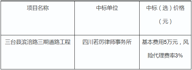 項(xiàng)目名稱:三臺縣濱涪路三期道路工程訴訟代理服務(wù)