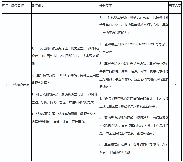 根據(jù)公司經(jīng)營管理需要,現(xiàn)面向公司內(nèi)外部公開招聘,崗位情況及需求人數(shù)如下: