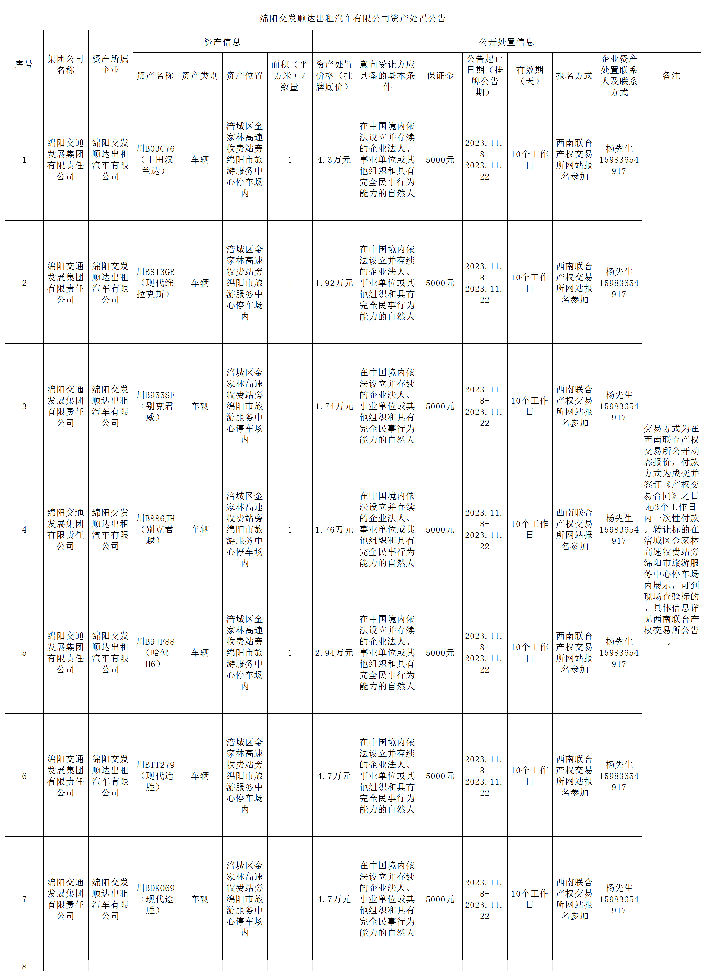 綿陽交發(fā)順達出租汽車有限公司資產處置公告